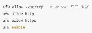 ② SSH 포트 변경 (기본값 22 → 예: 2290 등)