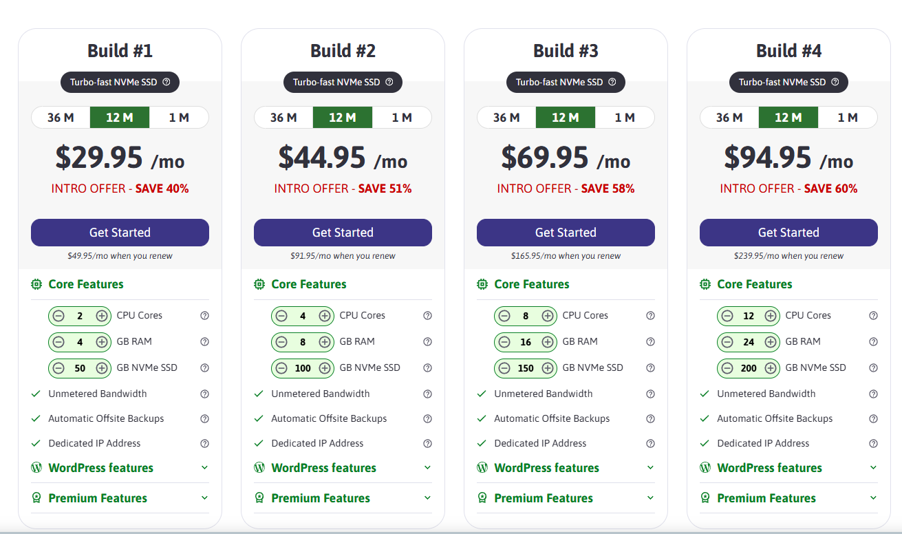 - 장점: NVMe SSD + AMD EPYC CPU, 1 Gbps 연결, 글로벌 데이터센터